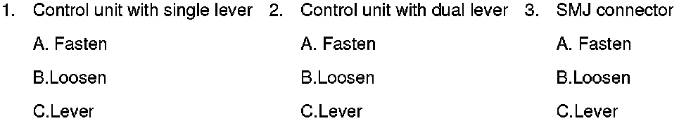 - Always confirm the lever is fully released (loosened) before attempting to disconnect or connect these connectors to avoid damage to the connector housing or terminals.