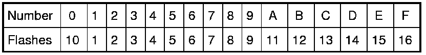 A particular trouble code can be identified by the number of four-digit numeral flashes per the following.
