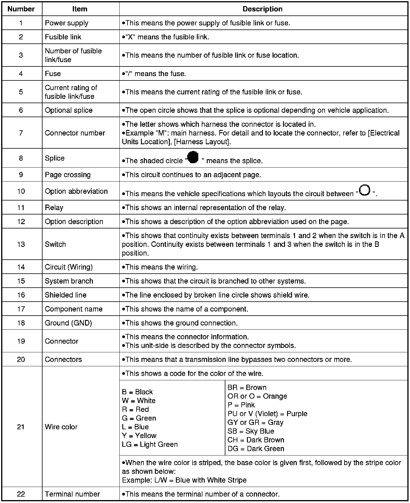 - Connector symbols shown from the harness side are enclosed by a double line and followed by the direction mark.