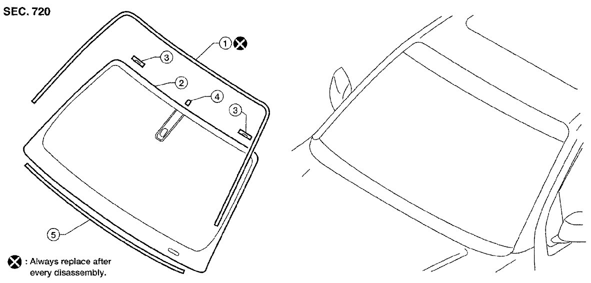 - If the windshield glass is to be reused, mark the body and the glass with mating marks.