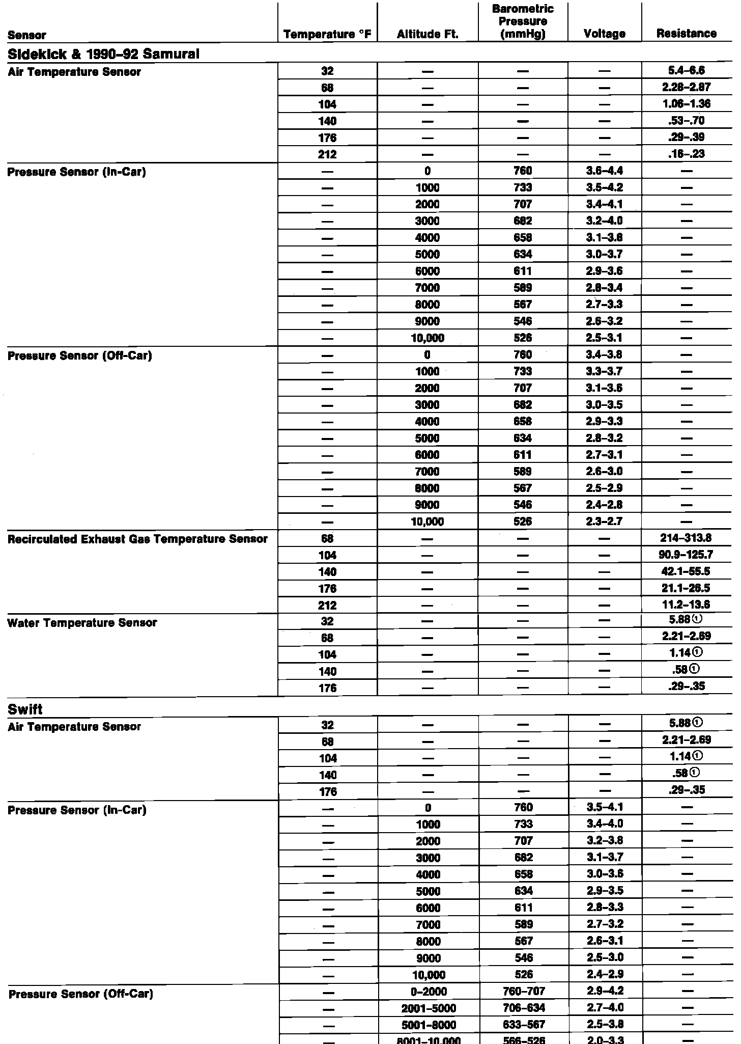 Air Temperature Sensor ( Ambient / Intake ): Specifications