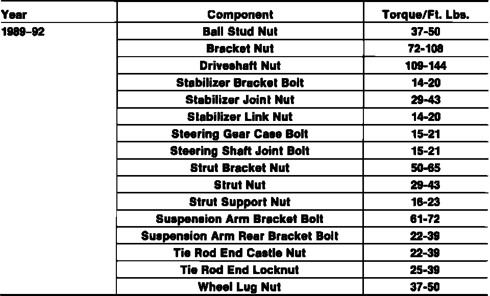 Tightening Specifications: