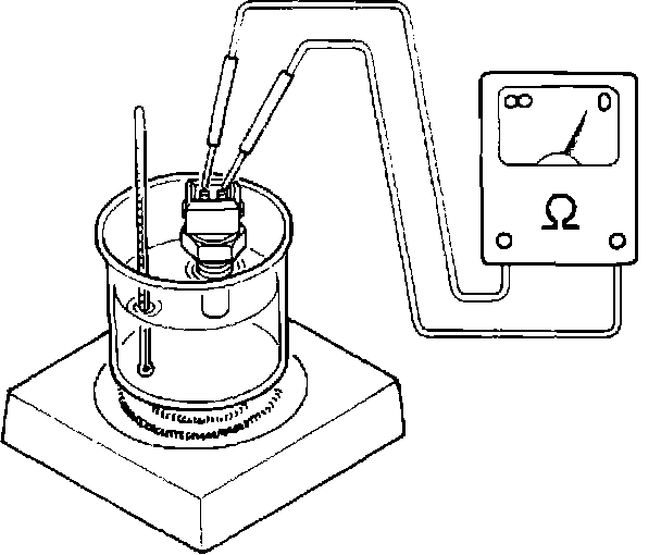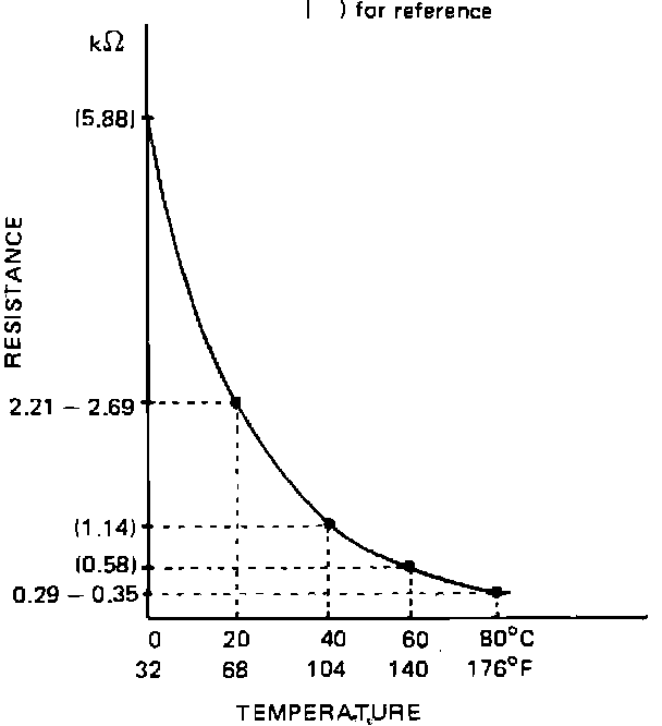 Immerse temperature sensing part of ATS in water (or ice) and measure resistance between sensor terminals while heating water gradually. If measured resistance doesn't show such characteristic as shown, replace air temperature sensor.