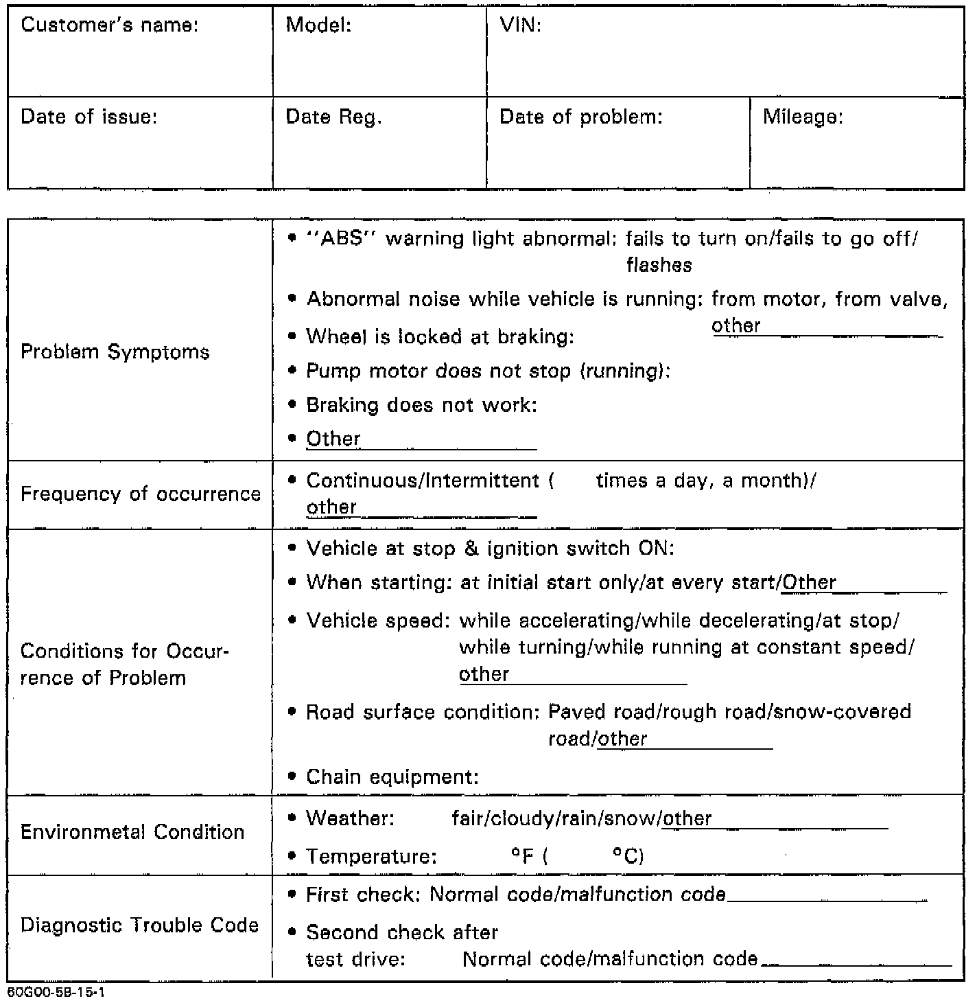Record details of the problem (failure, complaint) and how it occurred as described by the customer. For this purpose, use of such a questionnaire form as shown below will facilitate collecting information to the point required for proper analysis and diagnosis.
