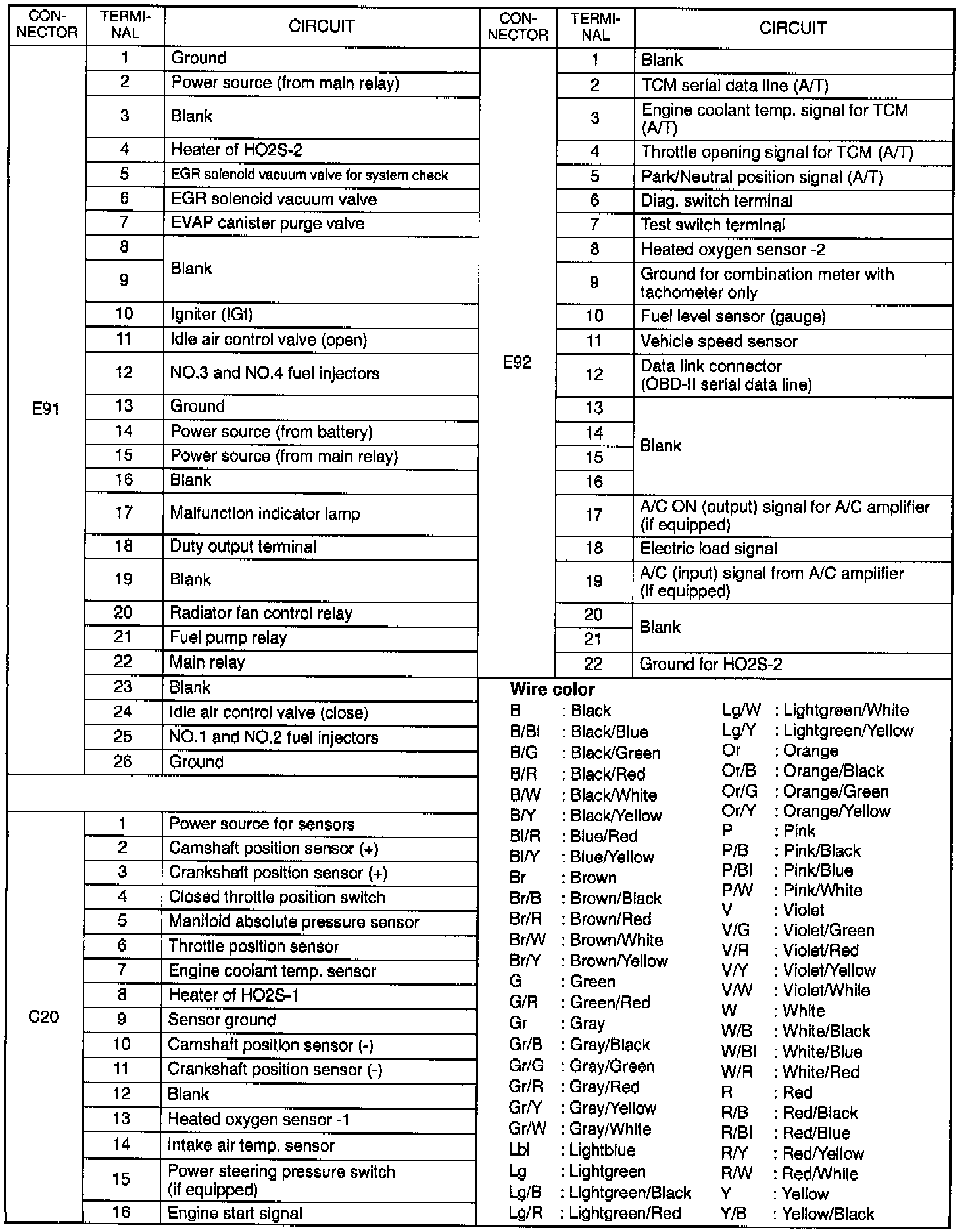 TERMINAL AND WIRE COLOR IDENTIFICATION