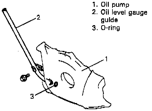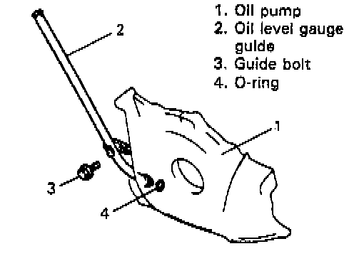 1. Remove oil level gauge guide bolt and pull out guide from oil pump.
