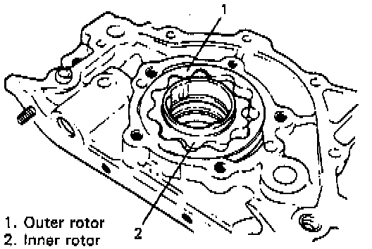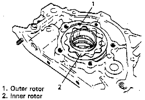 - Check outer and inner rotors, rotor plate, and oil pump case for excessive wear or damage.