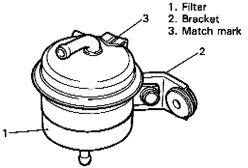 1. Install filter bracket to filter. Be sure to align match marks on filter and bracket before tightening bracket bolt.