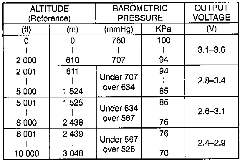 Output voltage (V in voltage 4.5 - 5.0V, ambient temp. 2O - 3O°C, 68 - 86°F)