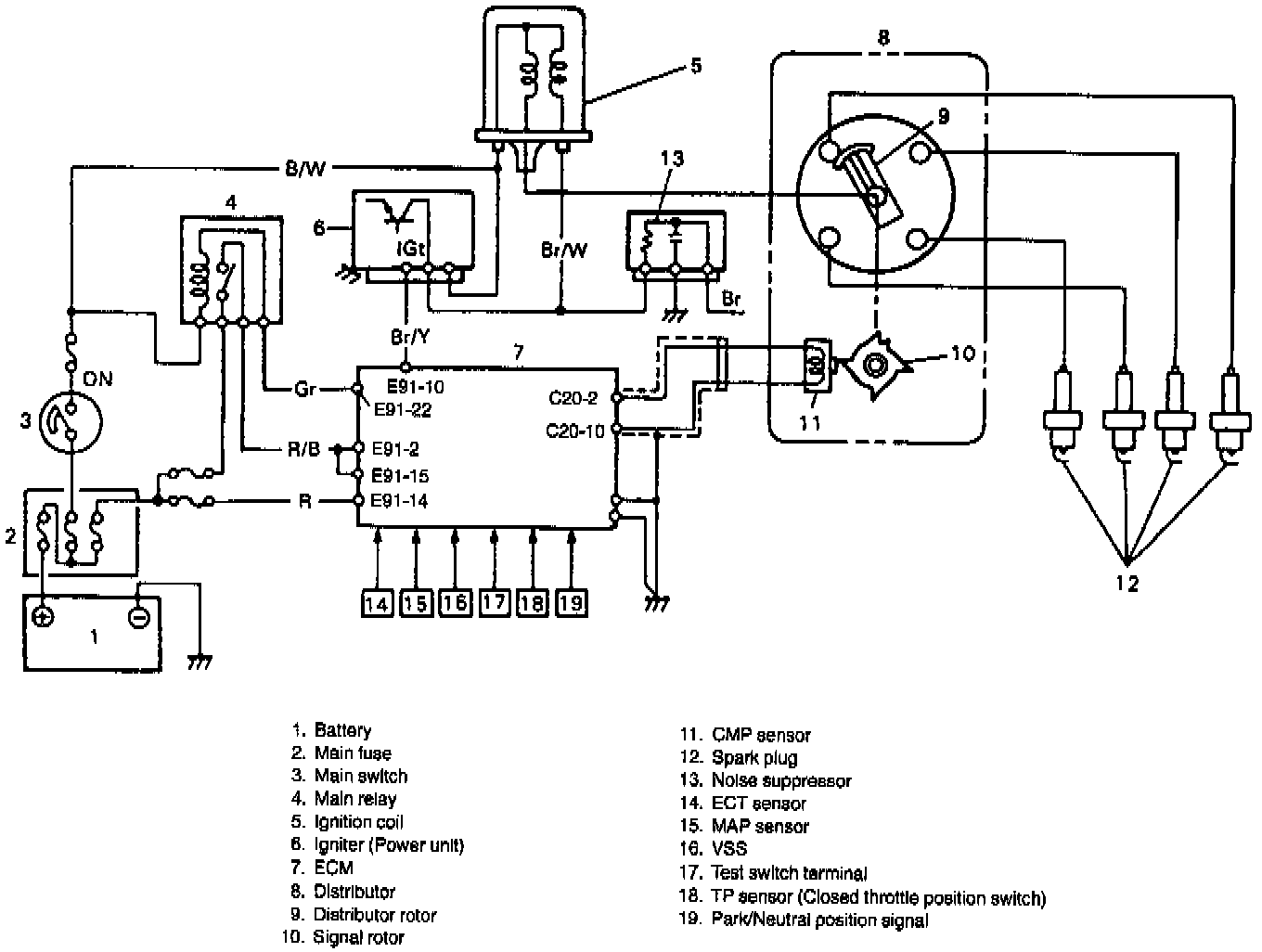 The ignition system used for this vehicle has an electronic ignition control system and consists of the following parts.