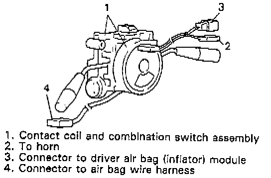 Do not turn contact coil (on combination switch) more than allowable number of turns (about two and a half turns from the center position clockwise or counterclockwise respectively), or coil will break.