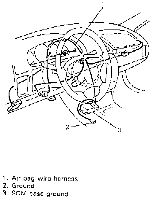 ^ Make sure all air bag system grounding points are clean and grounds are securely fastened for optimum metal-to metal contact. Poor grounding can cause intermittent problems that are difficult to diagnose.