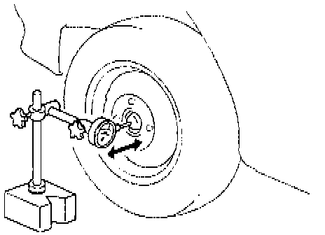 INSPECTION1. Check wheel bearing for wear. When measuring thrust play, apply a dial gauge to wheel hub.
