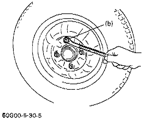 3. Torque front wheel nuts (b): 50 - 80 Nm (36.5 - 57.5 ft. lbs.).
