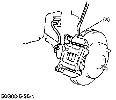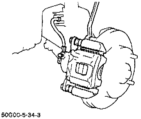 CAUTION: During removal, be careful not to damage brake flexible hose and not to depress brake pedal.