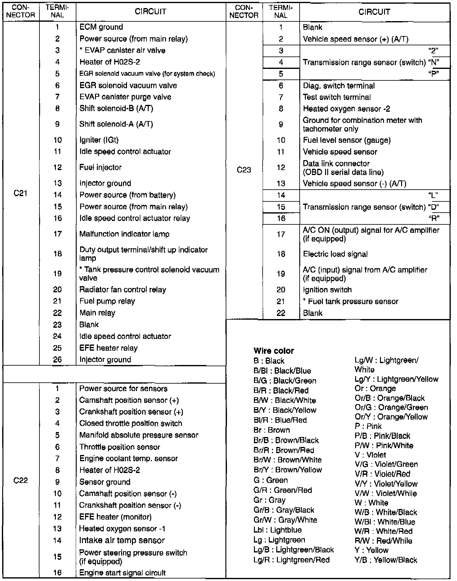 ECM TERMINAL PINOUT