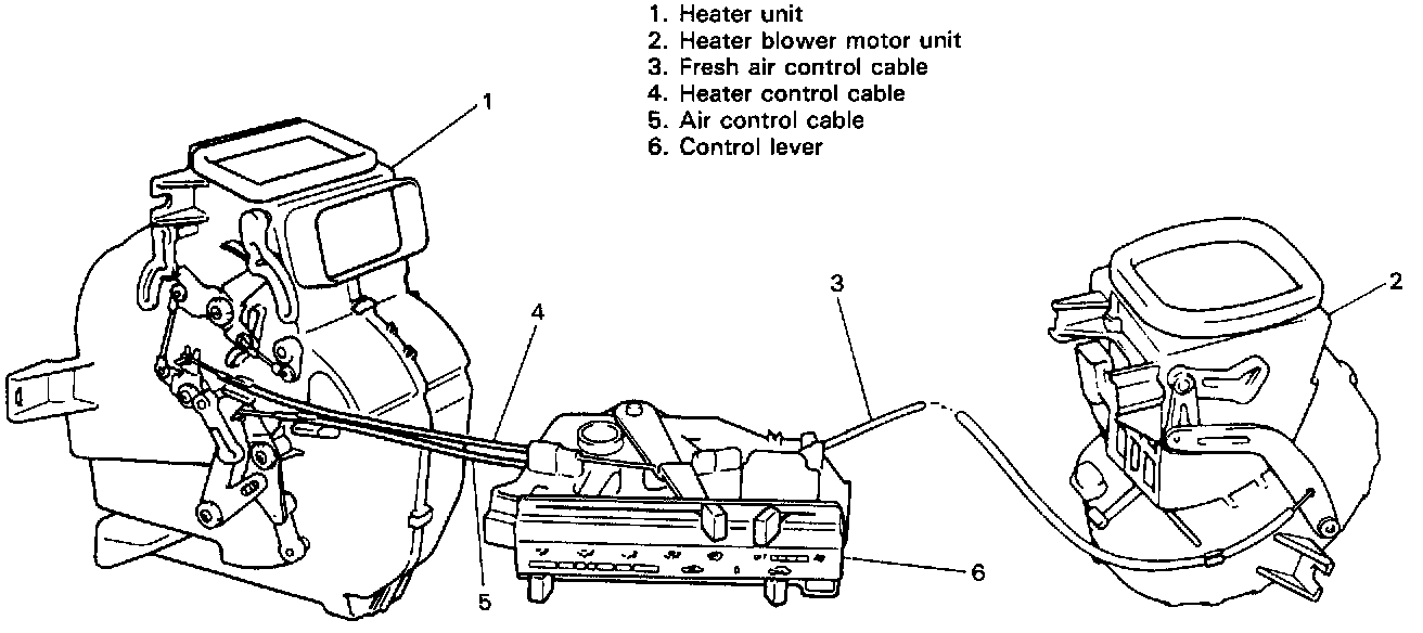 7) Disconnect control cables from blower motor unit and heater unit.