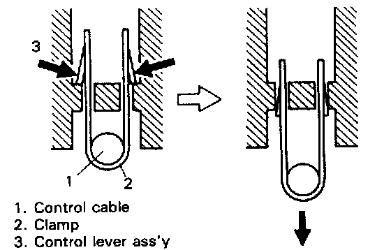 9) Disconnect control cables from control lever.