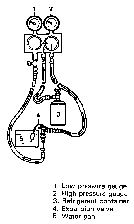 2) Soak remote bulb of expansion valve in water contained in a water pan.