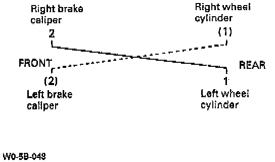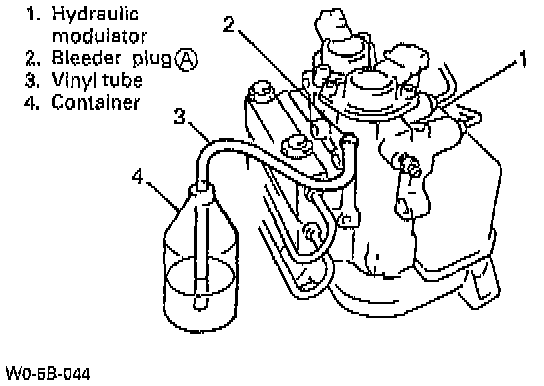 NOTE: Perform bleeding operation starting with wheel cylinder farthest from master cylinder and then at front caliper of the same brake line. Do the same on the other brake line.