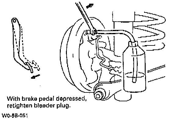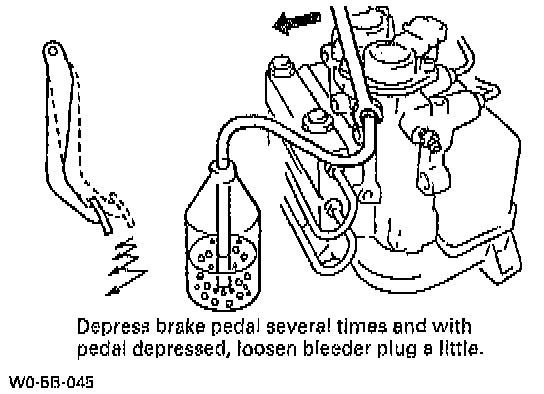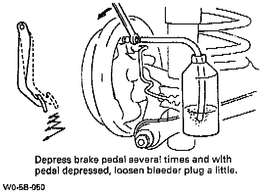 c. Depress brake pedal several times, and then while holding it depressed, loosen bleeder plug about one-third to one-half turn.