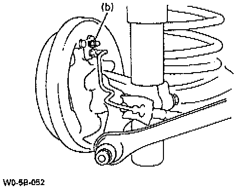 f. When bubbles stop, depress and hold brake pedal and tighten bleeder plug (b): to a torque of 9 - 13 Nm (7.0 - 9.0 ft. lbs.).