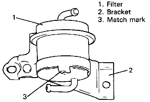 1. Install filter bracket to filter. Be sure to align match marks on filter and bracket before tightening bracket screw.