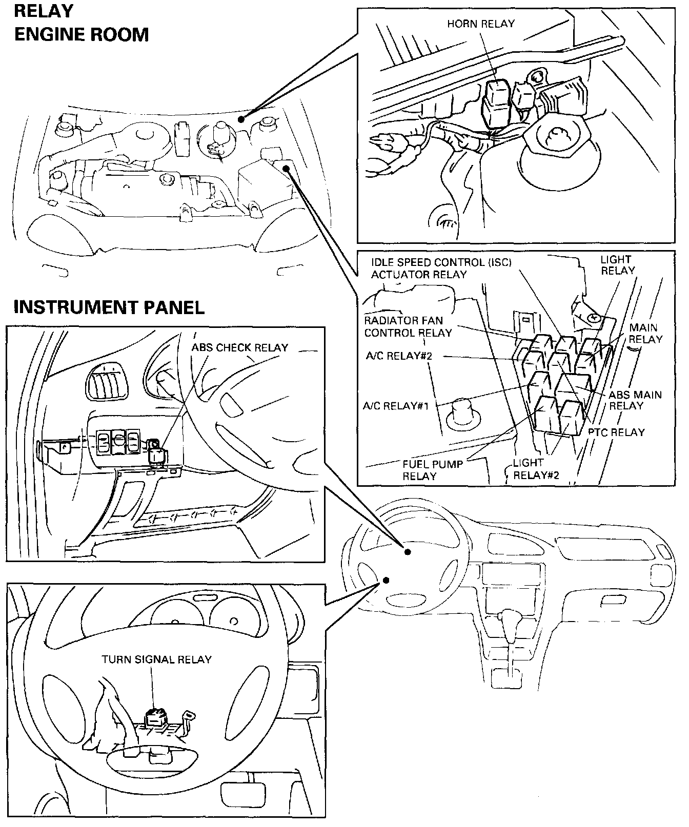 The diagram shows installation positions of fuse, relays and control units used in this vehicle. They are illustrated as shown in the diagram.