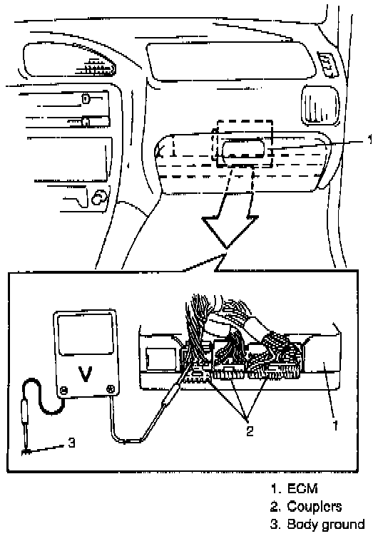 CAUTION: Never touch terminals of ECM itself or connect voltmeter or ohmmeter.