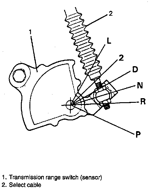 Being linked with the selector lever, this switch changes selector lever positions into electrical signals and sends them to the PCM. The contact points of this switch for P or N range are connected and cause the starting motor to operate by turning the starter switch On. When the selector lever is in any other position that P and N, the switch remains Off. and therefore the starting motor cannot be operated, that is, the engine cannot be started. Also, as its contact point for R range is connected with the back up light circuit only when the selector lever is shifted to R range, the contact point contacts to light the back up light.