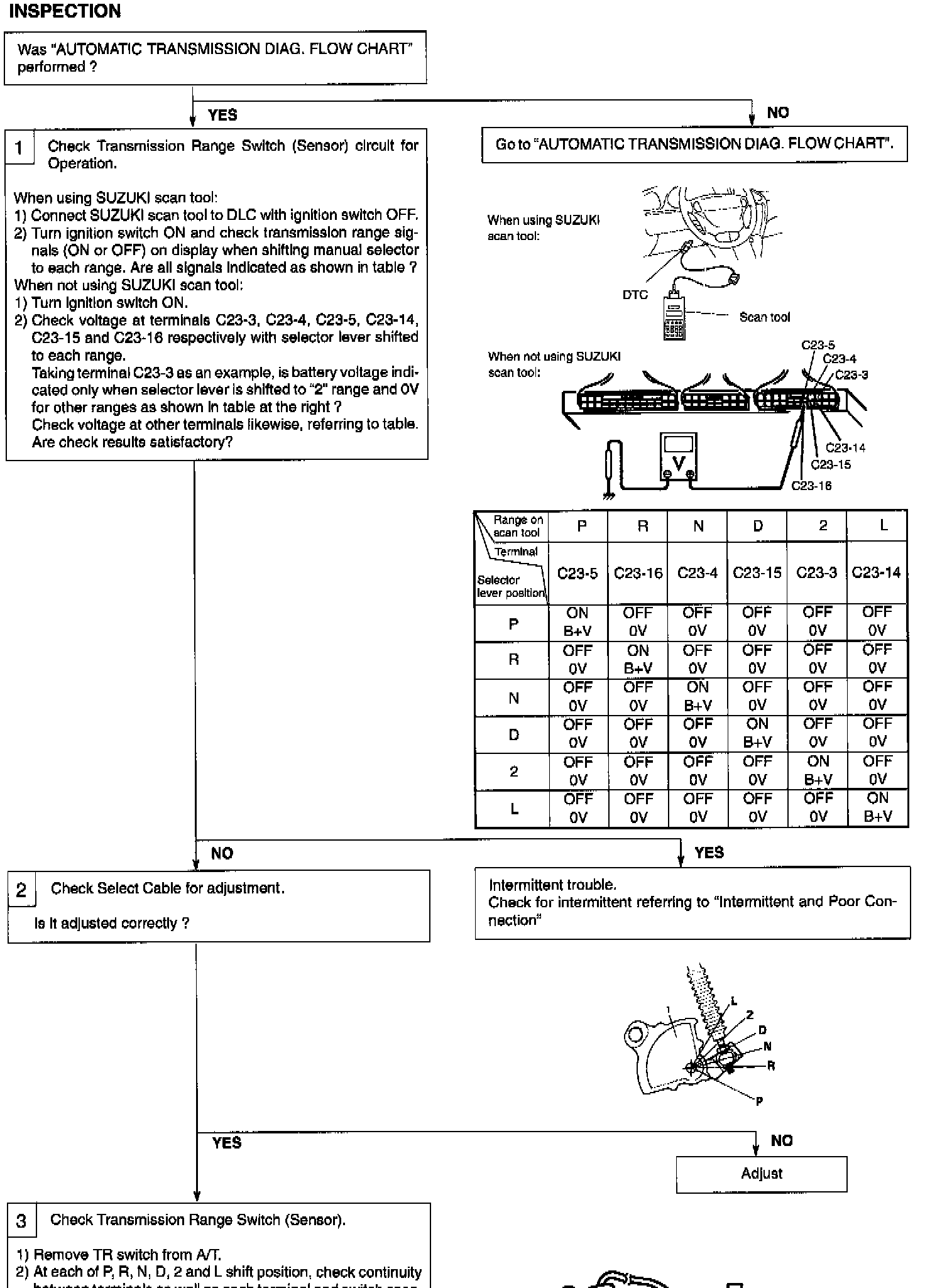 Check transmission range switch referring to step 1 of DTC P0705 Flow Chart, shown above.