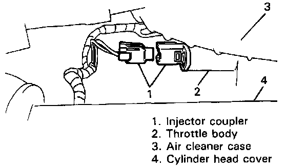 1. Disconnect injector coupler at throttle body side.