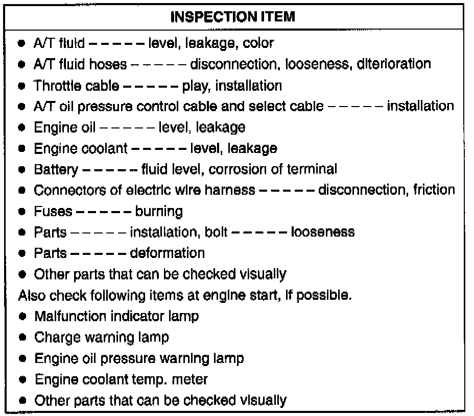 Visually check above parts and systems.