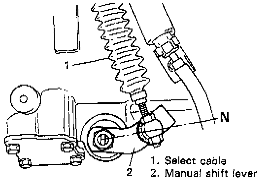 d. Shift selector lever from N to L and then back to N. turn starter switch ON and check that this causes starting motor to operate.