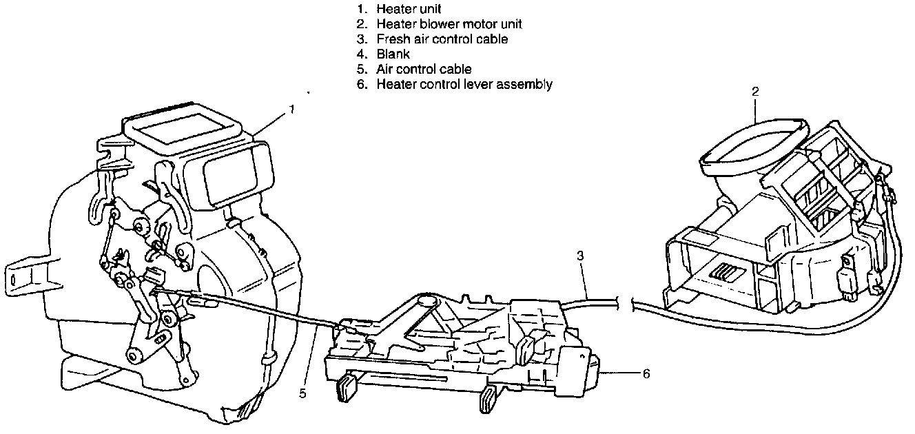 2) Remove heater control cables from control lever assembly.
