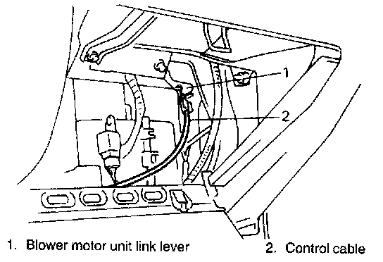 6) Disconnect control cables from blower motor unit and heater unit.