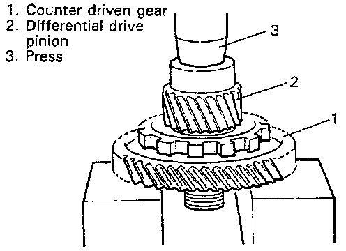1. Press differential drive pinion to counter driven gear, using hydraulic press.