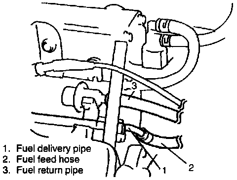 11. Disconnect fuel feed hose from feed pipe and return hose from fuel pressure regulator.