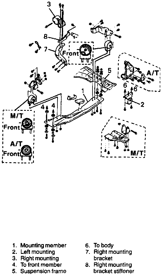 4. Install mounting member to front member and suspension frame.