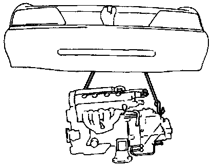 1. Lift engine with transmission into engine compartment, but do not remove lifting device.