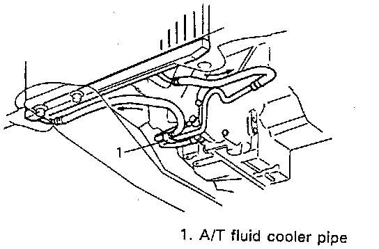 3. Remove A/T fluid cooler pipe from A/T with hose connected.