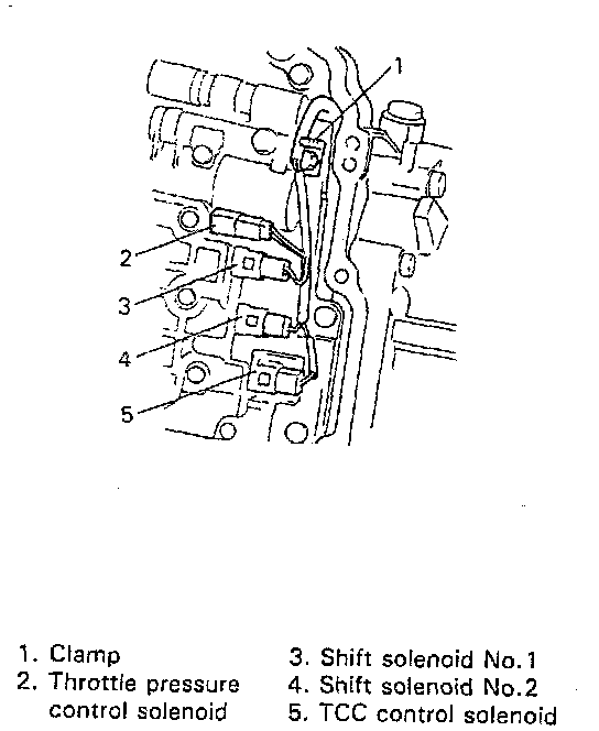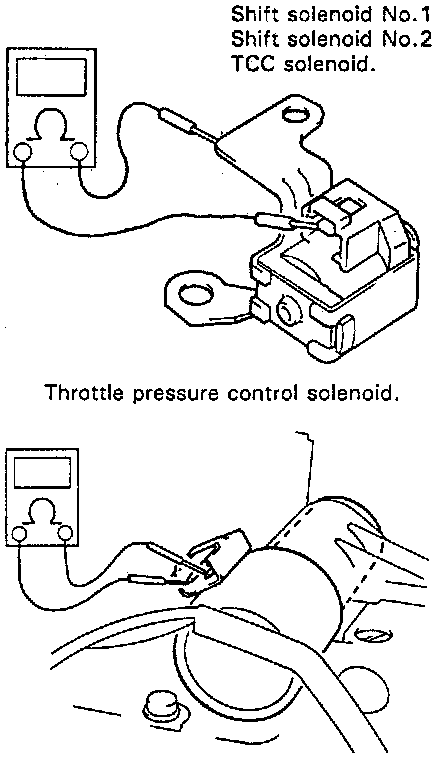 - Shift solenoid No.1 and No.2 and TCC solenoid Check resistance between terminal and solenoid body.