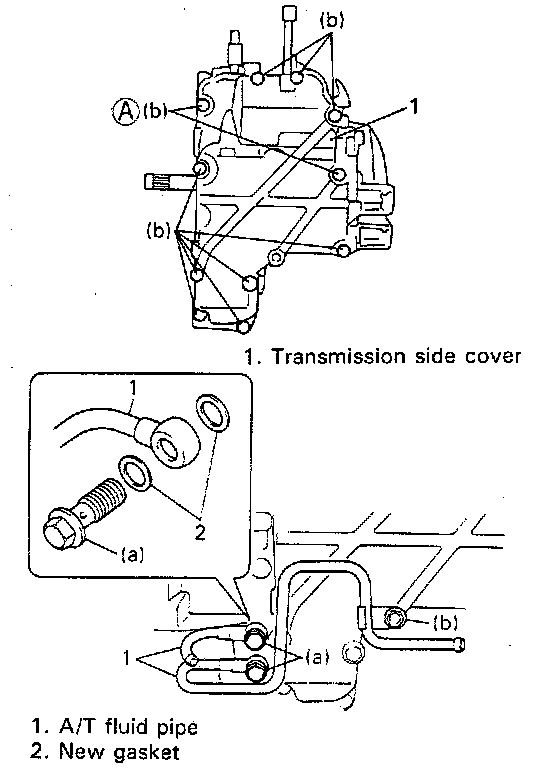 NOTE: Make sure to use new gaskets for A/T fluid pipe union bolts.