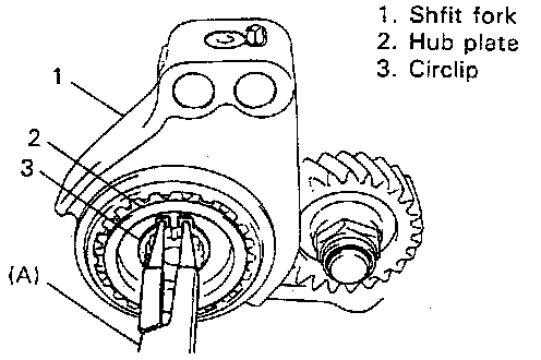 2. Insert each gear shift shaft into case and check that it moves smoothly. If it doesn't, correct by using oilstone, reamer or the like.