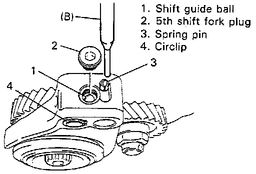 3. Remove shift fork plug and guide ball.