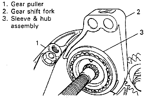 CAUTION: Make sure to use flat side of puller to avoid causing damage to 3rd gear tooth.