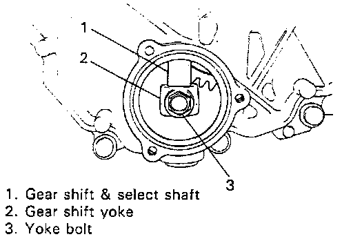 2. Remove gear shift yoke bolt.