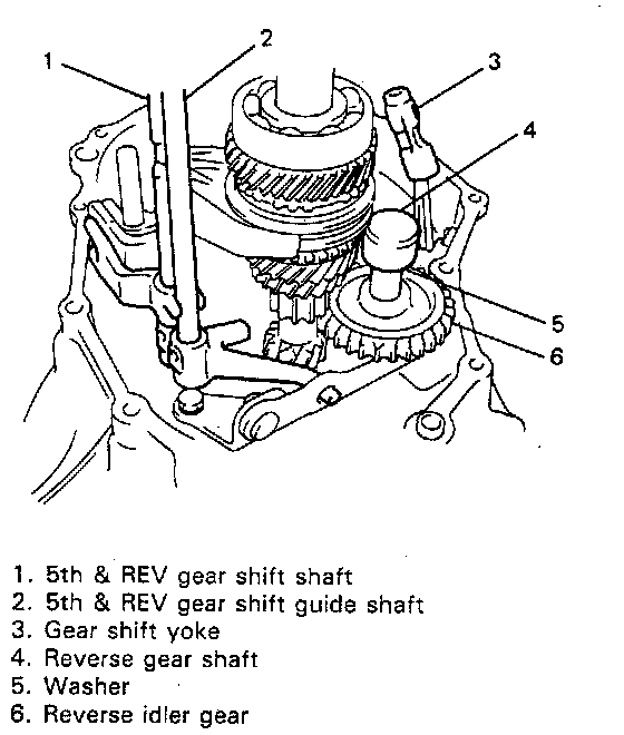 12. Pull out reverse gear shaft with washer, then take off reverse idler gear.