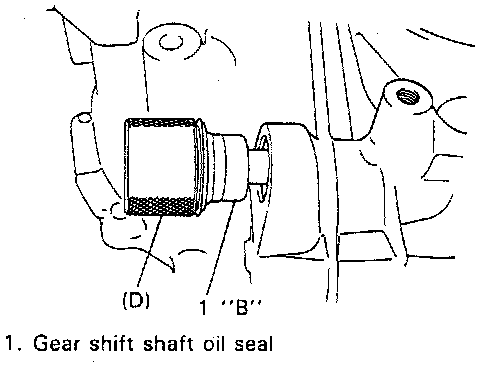 4. Apply grease to gear shift shaft oil seal at its lip and install it up to bottom of the bore by using special tool and hammer.