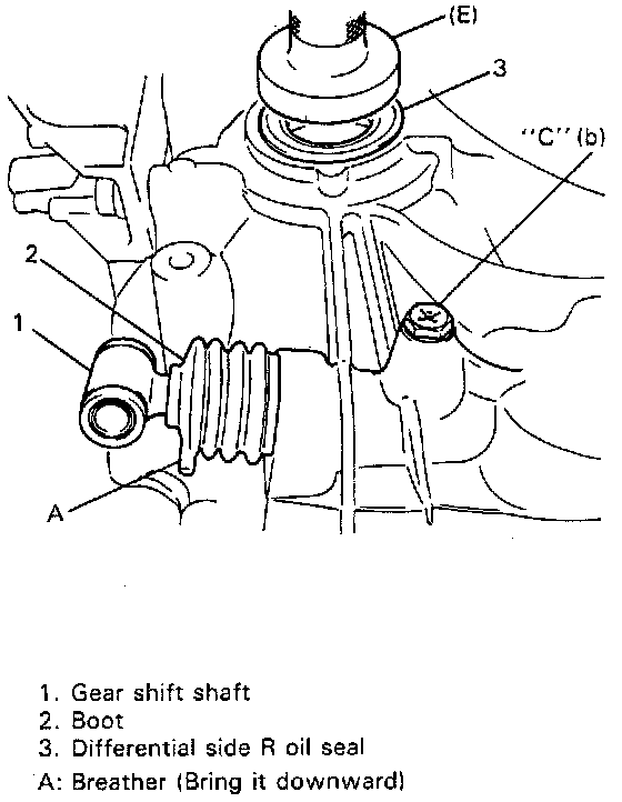 NOTE: Bring breather of gear shift shaft boot downward.